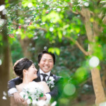 森の中の写真は「かわいく」「かっこよく」「ナチュラル」など、色んな写真の雰囲気が撮影できますので、特に白のウェディングドレスでオススメしたいロケーションスポットです。